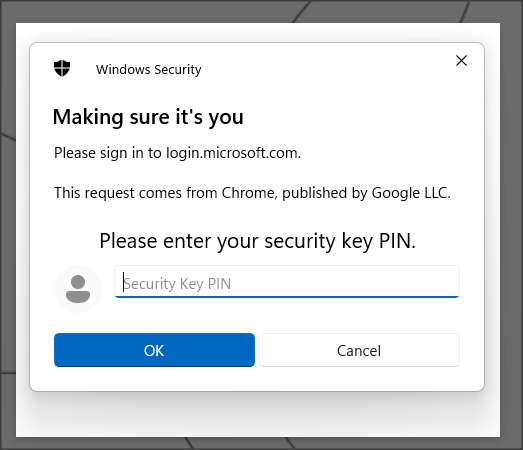Om je Yubikey te gebruiken kies je in onderstaand scherm voor security key.