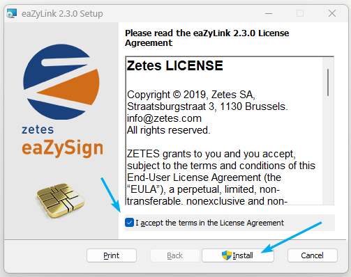 Vink het acceptatie veld aan en vervolgens klik op Install.