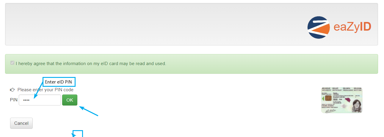Voer de PIN code van je eID in en vervolgens druk op OK.