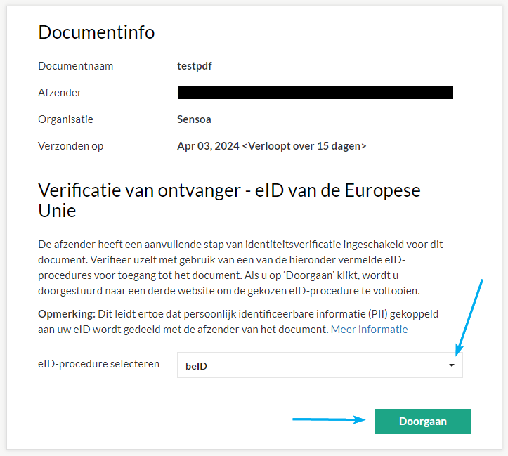 De ondertekenaar ontvangt onderstaande mail met het verzoek om een document te ondertekenen.