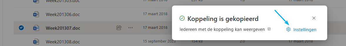 Een tijdelijke link gebruik je in bv. mails naar externen, in documenten gebruik je altijd permanente links. Wanneer je ‘Koppeling Kopiëren’ selecteert in de Public krijg je de standard optie voor ‘Iedereen met de koppeling’. In mails is het altijd ...
