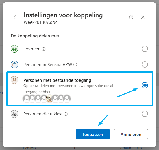 Stap 4: Selecteer 'Personen met bestaande toegang' en vervolgens op Toepassen.